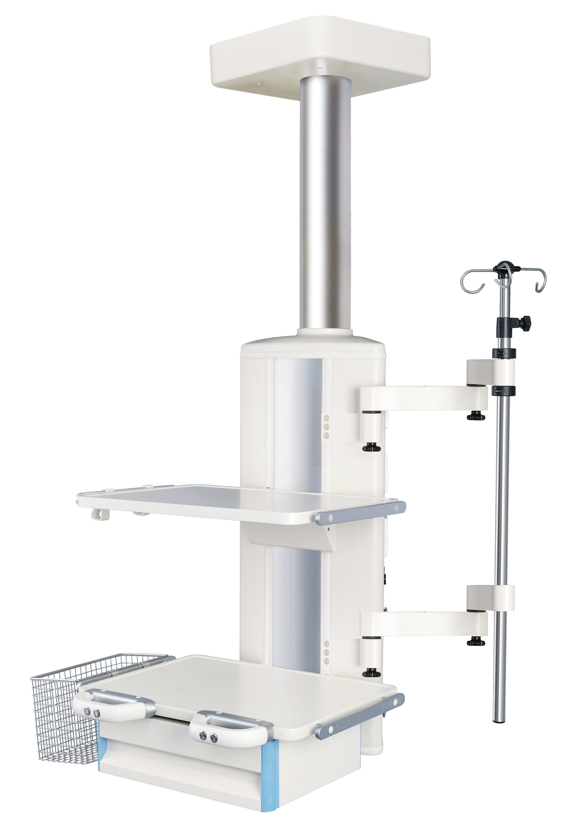 ICU 干濕分離旋臂吊橋 適用于醫(yī)院ICU病房,是現(xiàn)代重癥監(jiān)護病房必備的醫(yī)療搶救輔助設(shè)備,主要由橋架,干段和濕段組成。其特點在于合理的干濕分離結(jié)構(gòu),濕段配置升降靈活的輸液架和輸液泵架。干濕段配置有可升降調(diào)節(jié)的醫(yī)療監(jiān)護儀器平臺,在干濕段上分別將氧氣,空氣,吸引,強弱電,網(wǎng)絡(luò)輸入終端配置在醫(yī)護人員抬手可及的塔體上。濕段采用懸臂結(jié)構(gòu),提高了治療空間,移動旋轉(zhuǎn)部分采用氣控制動防飄移,桁架中央配置一款環(huán)保,節(jié)能的LED照明治療。為臨床治療提供了照明解決方案,另外還可根據(jù)您的要求選配通信傳呼,監(jiān)控,可視電話